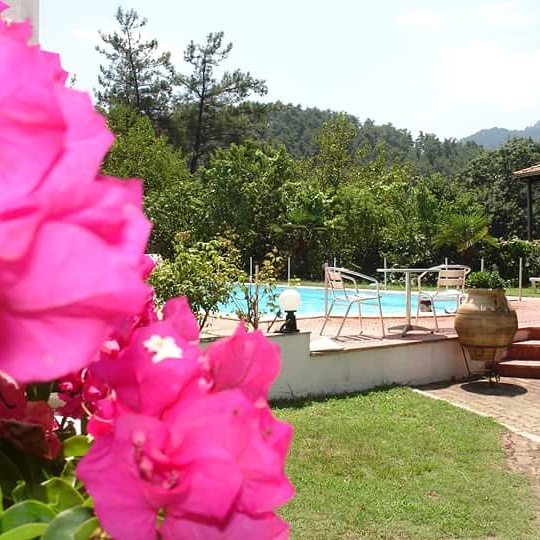 Σε μικρή απόσταση από την θάλασσα στις παρυφές του πευκοδάσους, σε ευρύχωρα δωμάτια εξοπλισμένα με ατομικό μπάνιο, κουζίνα, κλιματισμό και τηλεοράσεις LCD. Στον καταπράσινο κήπο και την πισίνα θα ζήσετε στιγμές χαλάρωσης και ξεγνοιασιάς. Σε φιλόξενο οικογενειακό περιβάλλον θα ζήσετε αξέχαστες διακοπές στο πανέμορφο νησί μας. Σας περιμένουμε στην έξοδο του Λιμένα στο δρόμο προς την Παναγία.